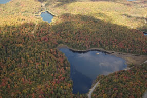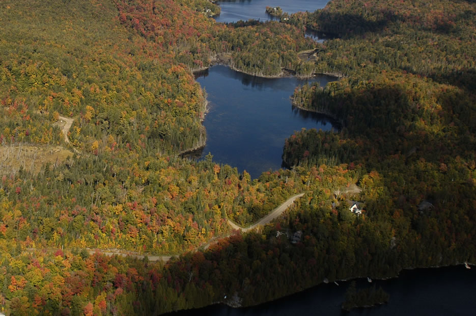 It is the largest lake with 8 kms or 6 miles of shoreline. It is deep, clear and indigenous trout is abundant. Each property on the lake has a minimum 300 lin.feet or 100 lin.m. of shore line. The average size of the lots on the lake front is approximately 125,000 sq.ft. or 11,600 sq.m. and over. The backland is all owned by the lake shore residents which completely protects it of any futur development near the all ready existing houses by the lake.