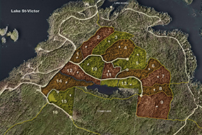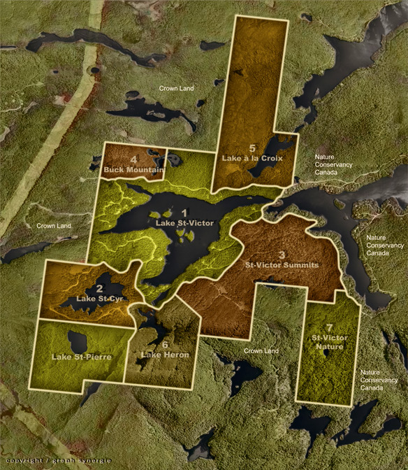 Lake Thurson and Wheeler, owned by Lake St-Victor Estates are located far East of lake St-Victor and are not part of the overall plan of the Estates. This territory is approx. 375 acres (150 hectares).