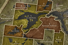 The St-Victor summits are located south of lake St-Victor and are about 200 acres (80 hectares).This magnificent site offers private and peaceful estates all located on leveled mountain tops for easy constructions, ideal for a pool and tennis court.