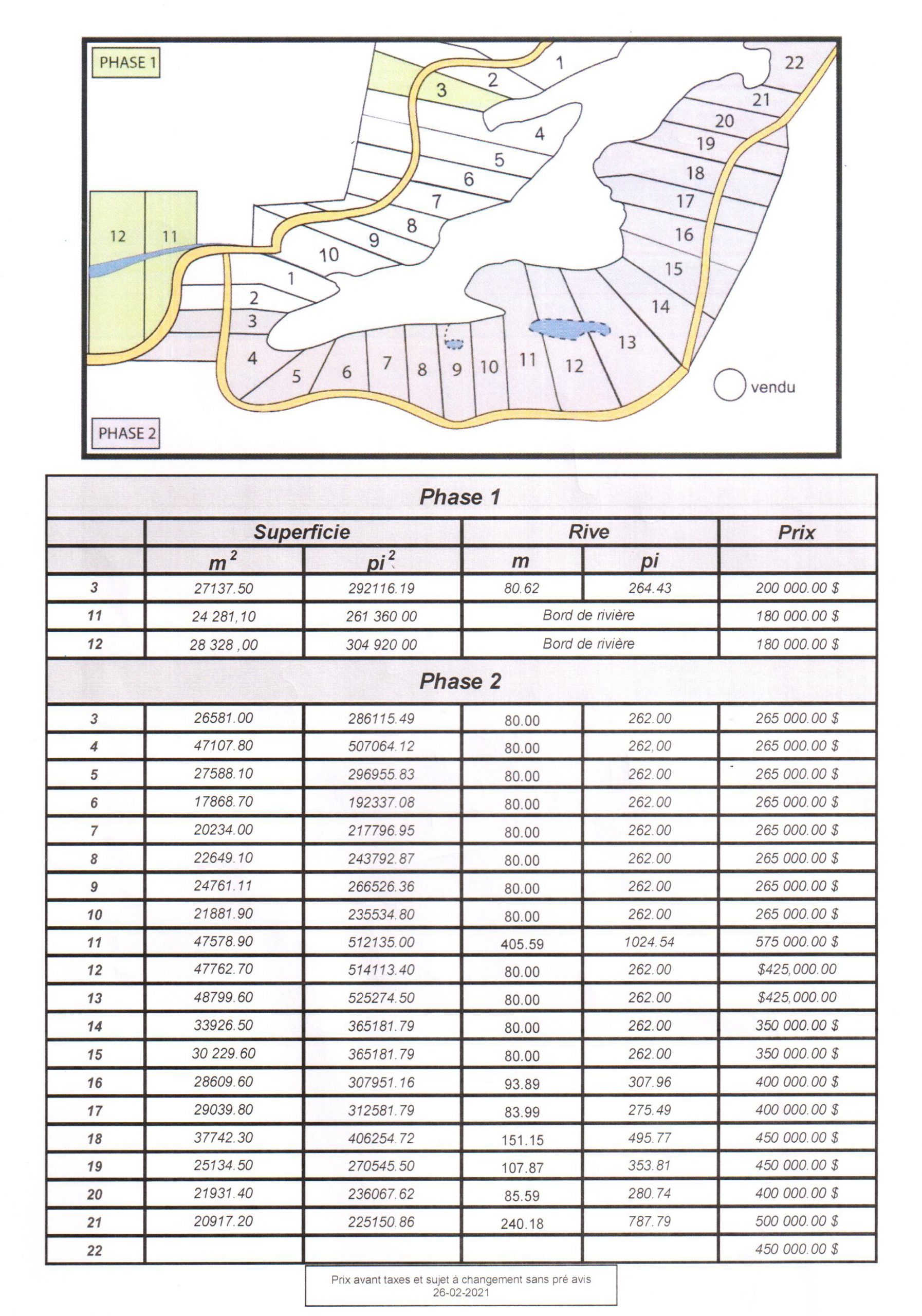 This phase will only have twelve lots of 5 to 10 acres (2 to 4 hectares) to be finalized upon demand.