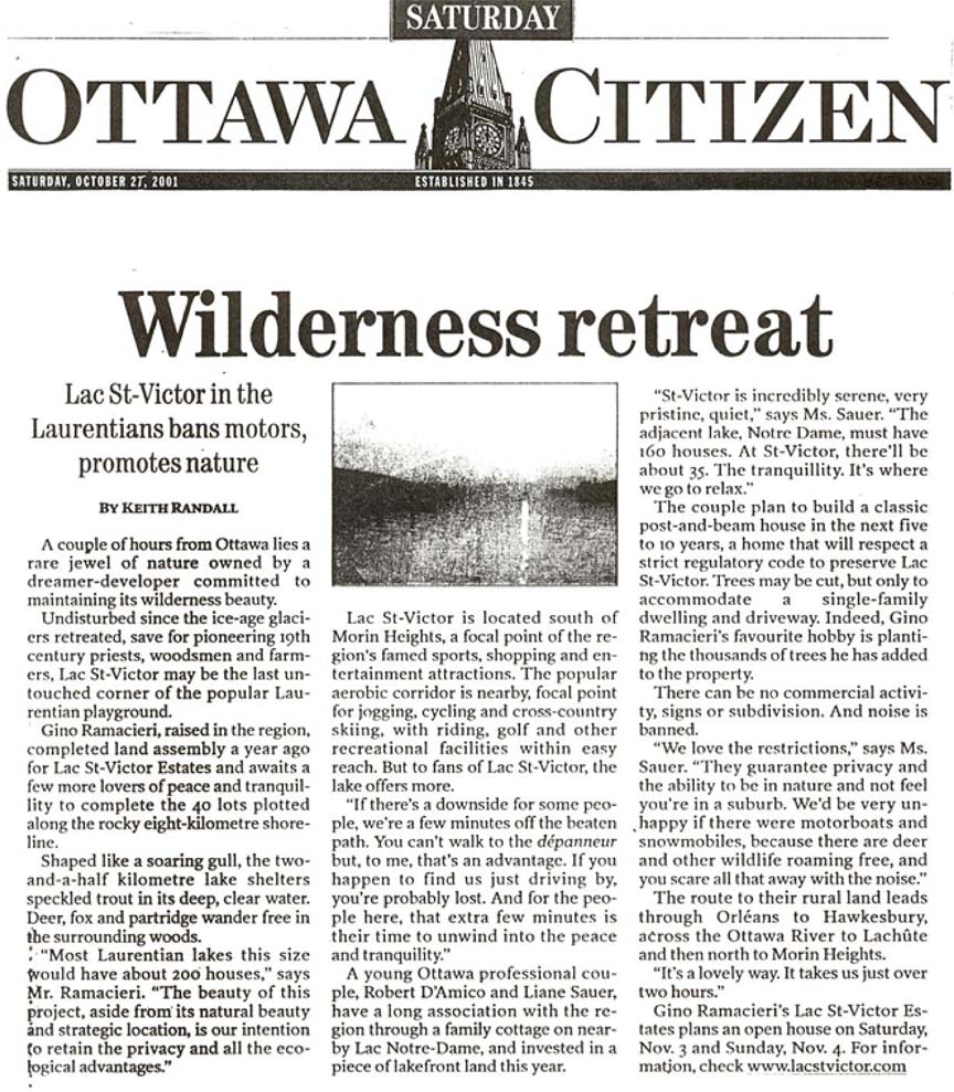 A couple of hours from Ottawa lies a rare jewel of nature owned by a dreamer-developer committed to maintaining its wilderness beauty.
