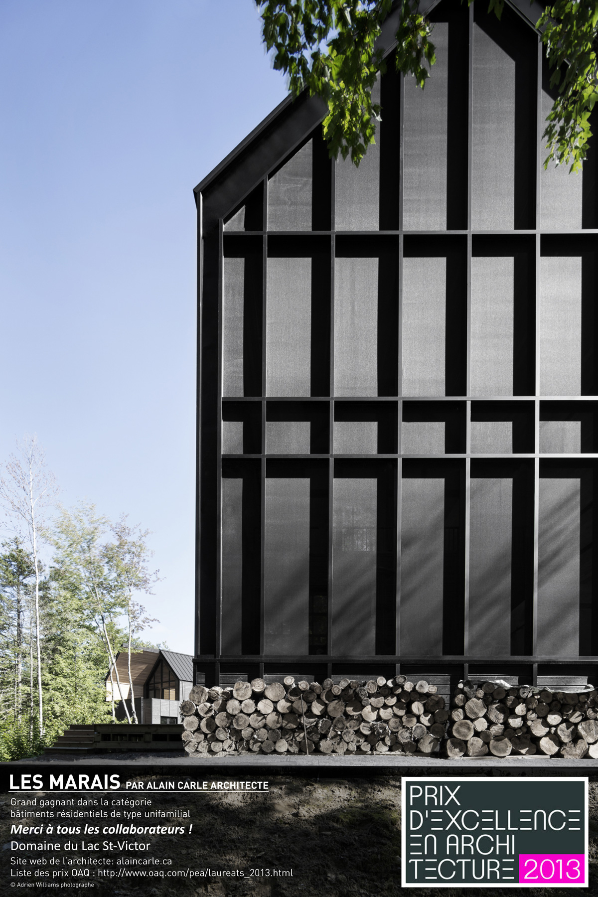 Posted on 2013-11-16 by plabelleProjet Les Marais,Domaines Lac St-Victor, Alain Carle Architecte 16 NOVEMBRE 2013 Alain Carle, Architecte, grand gagnant du 1er prix dans la catégorie bâtiment résidentiel de type unifamilial 2013.